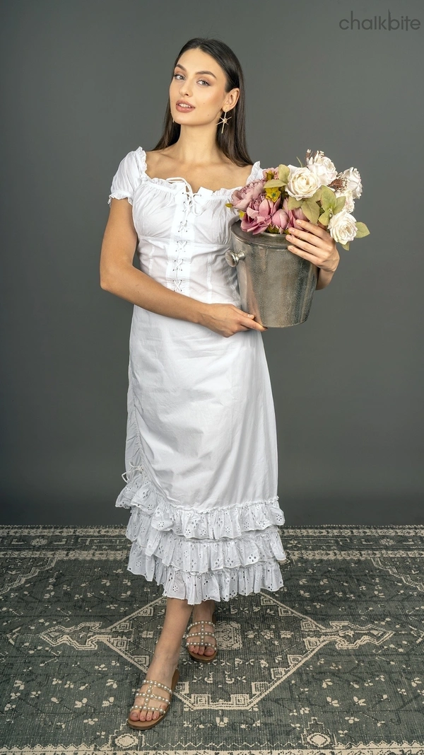 This one piece is a perfect combination of corset tie down on a fun and naughty cotton dress.