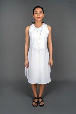CERAMIC SLEEVLESS PLEATED SHIRT DRESS/TUNIC